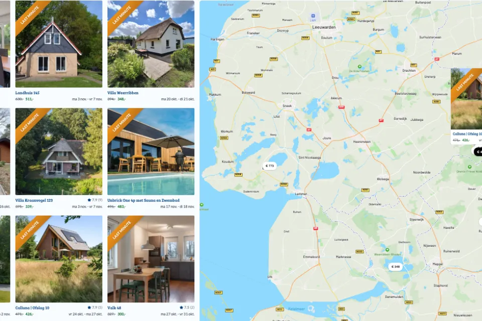 - Alle vakantiehuizen direct op de landkaart bekijken