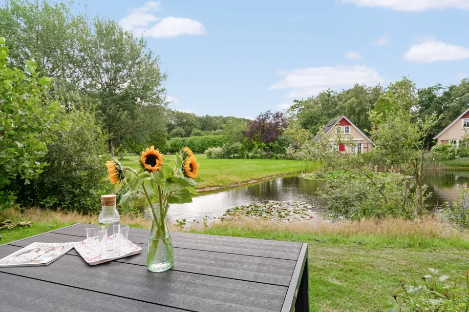 Vanuit de deuren vanaf de woonkamer bereik je het terras met een ruime tuin, uitgerust met tuinmeubilair. Een heerlijke plek om te ontspannen en te genieten van de rust en natuur. De ligging aan de vijver zorgt voor een prachtig uitzicht. Bovendien is er een parkeerplek bij de woning.