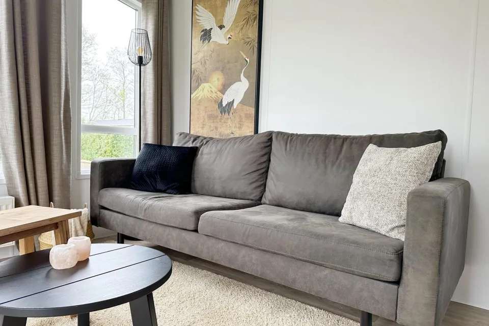Stap binnen in dit comfortabele chalet en voel u direct thuis. De lichte woonkamer heeft een gezellige zithoek met een comfortabele bank en een eettafel voor vier personen. Ontspan hier na een lange dag vol avontuur, kijk een film op de smart-tv of speel een bordspel. De airconditioning zorgt voor een aangename temperatuur op warme dagen, terwijl de centrale verwarming het chalet behaaglijk maakt in de winter. Dankzij de wifi blijft u verbonden met thuis.
