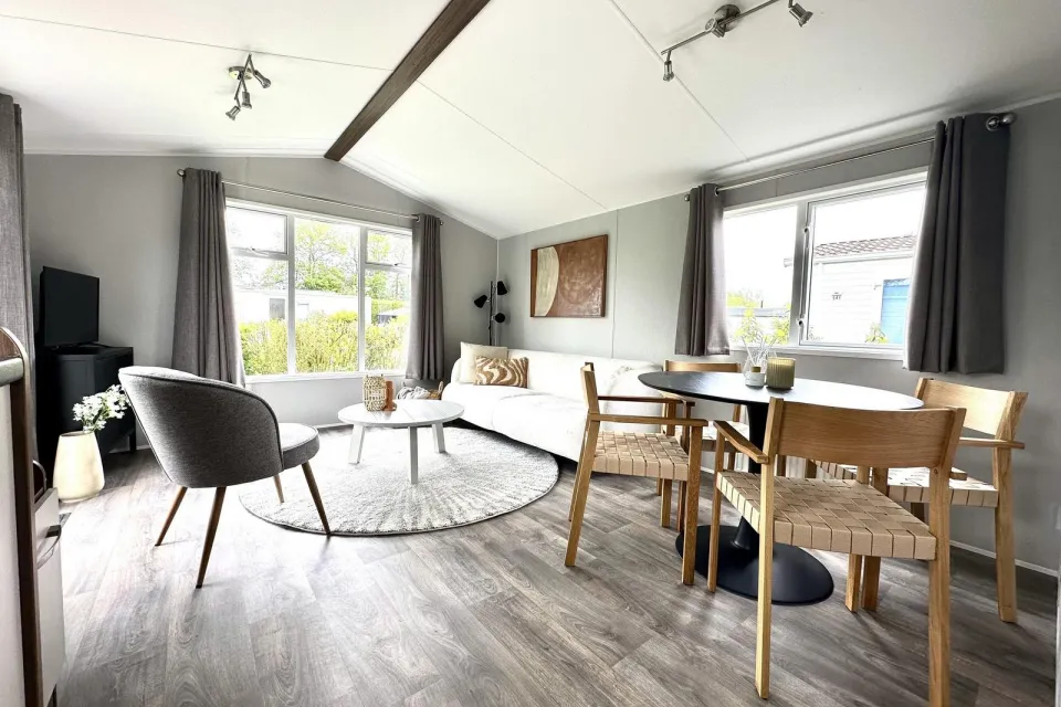 Geniet van een licht en comfortabel chalet met moderne keuken, twee slaapkamers en een zonnig terras. Boek nu en ervaar rust, ruimte en strand vlakbij.