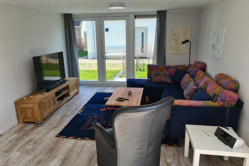 Stap binnen in de ruime en lichte woonkamer met een moderne open keuken. Grote deuren verbinden de woonkamer naadloos met de tuin. Zo geniet u binnen en buiten van de prachtige omgeving. Ontspan op de comfortabele bank of eet gezellig aan de eettafel. De keuken is van alle gemakken voorzien. Zo beschikt u over een 4-pits elektrische kookplaat, een magnetron, een filter koffiezetapparaat, een waterkoker en een koelkast met vriesvak. En het beste? U vindt er ook een vaatwasser en een oven, zodat koken en opruimen een fluitje van een cent is.
